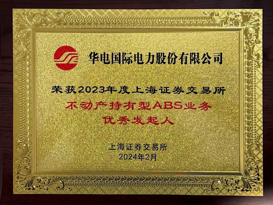 华电国际积极开展权益类REITs项目发行工作,2023年、2024年连续两年荣获上海证券交易所“资产证券化业务优秀发起人”荣誉称号。
