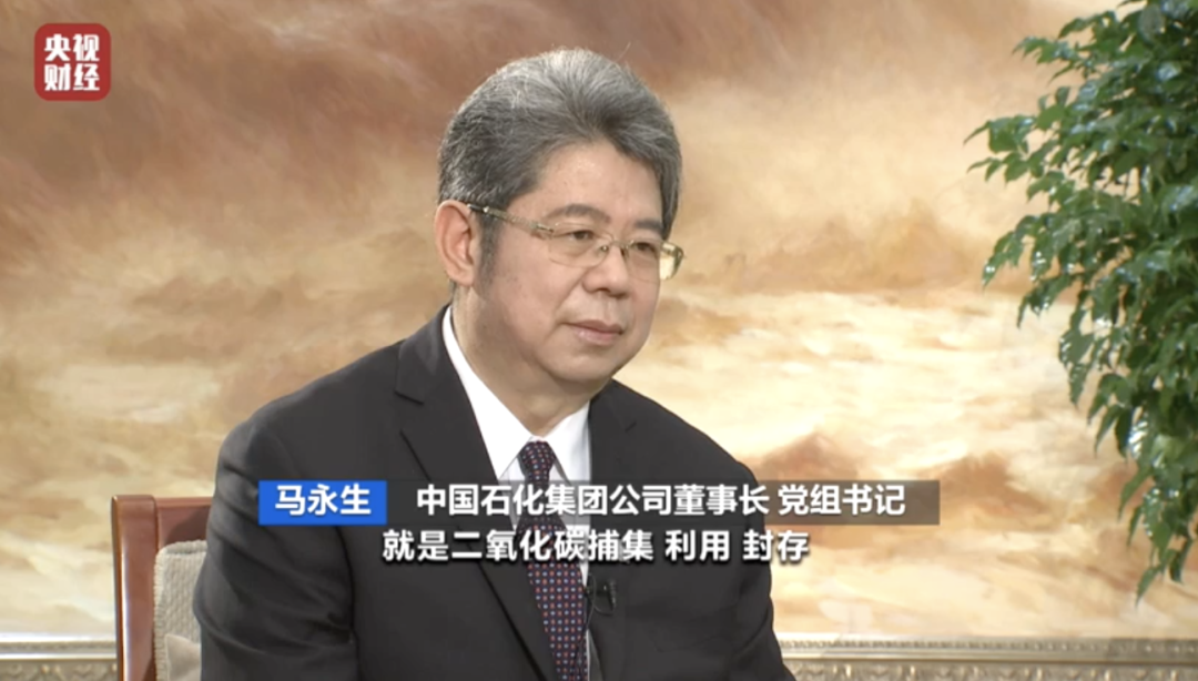 中国石化集团公司董事长党组书记马永生:CCUS,就是二氧化碳捕集、利用、封存,这项事情中石化从小到大、从无到有,具体讲就是山东的齐鲁石化高浓度的二氧化碳捕集起来,输送到在山东80公里之外的胜利油田,注到地下,把原来不易出来的一些原油让它按照我们设置的路径生产出来。一方面把相当一部分二氧化碳封存到地下三到四千米的一个位置,同时对增加提高原油的采收率、增加原油的产量起到了很好的作用。
