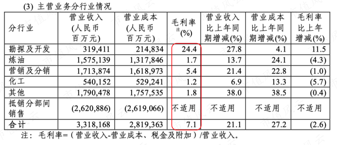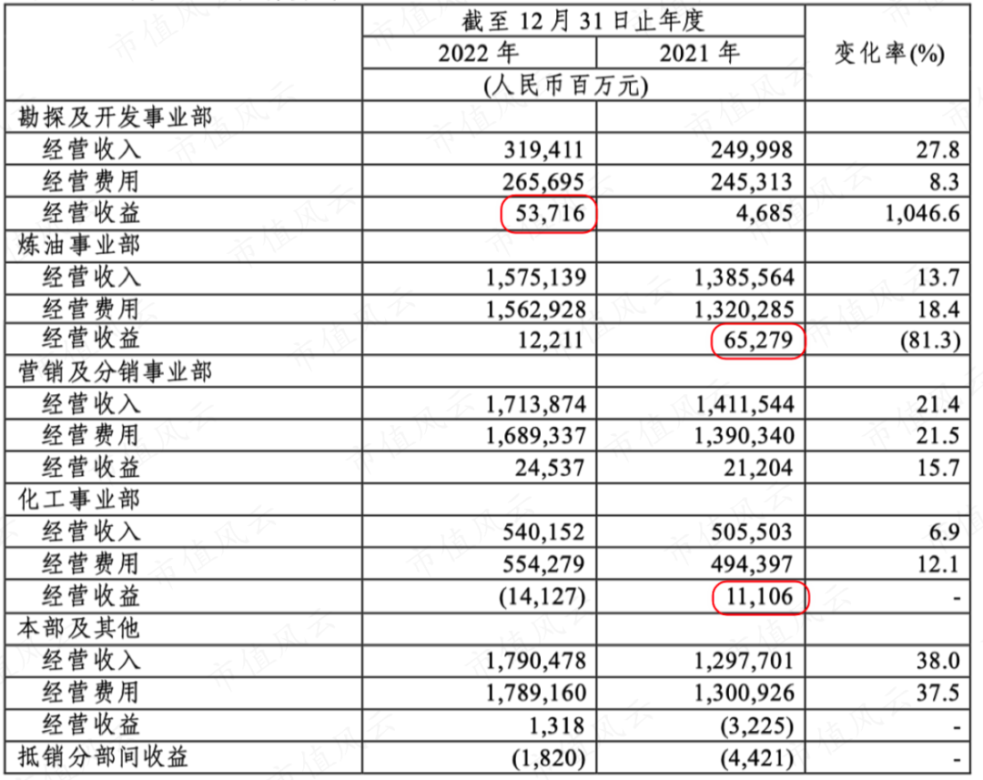 炼化实力还是公司强,但2022年由于高油价也导致炼油和化工业务的毛利率相对较低。