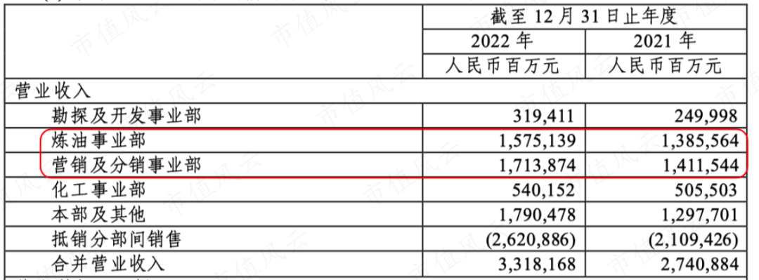 (2022年中国石化营业收入构成)
