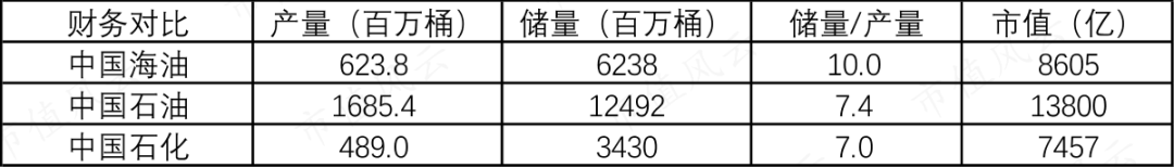 中国石油和中国石化偏陆上石油,从资源禀赋上,中国石化远不如中国石油,油气资源无论是产量和储量都差了3倍以上。