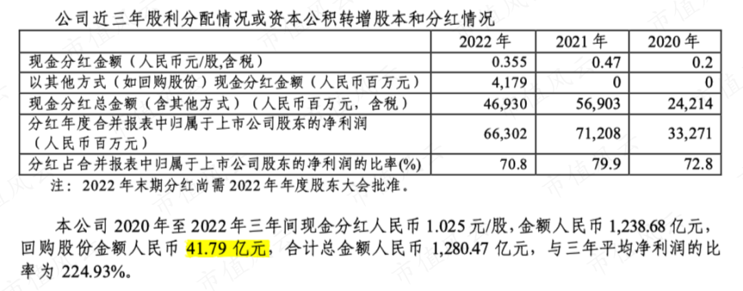 2022年为维护公司价值及股东权益,还启动过回购,最终回购了41.79亿。