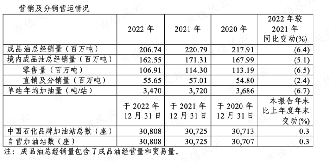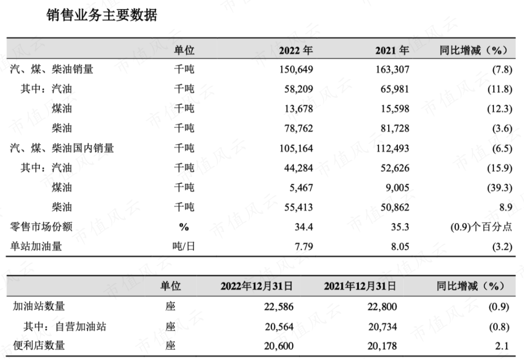 (中国石化销售业务主要数据)