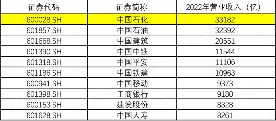 2022年,A股上市公司营业收入排名第一的是中国石化(600028.SH),营业收入3.32万亿,比第二名中国石油的3.24万亿多了一点儿。