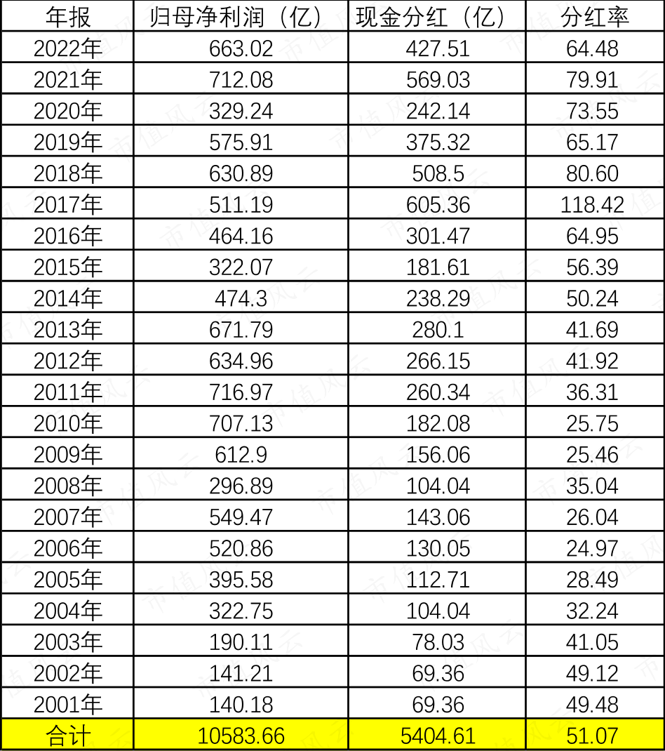 算上回购,2022年的分红率高达71%!