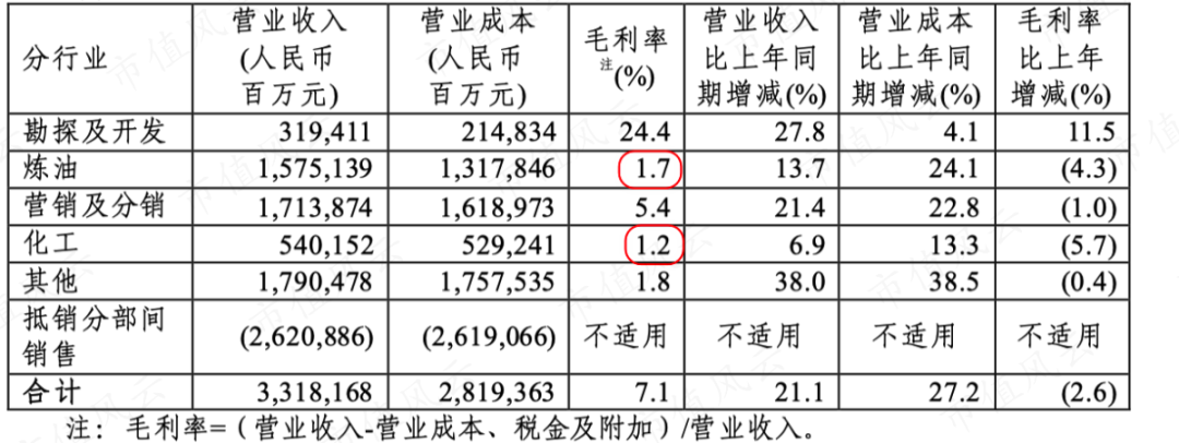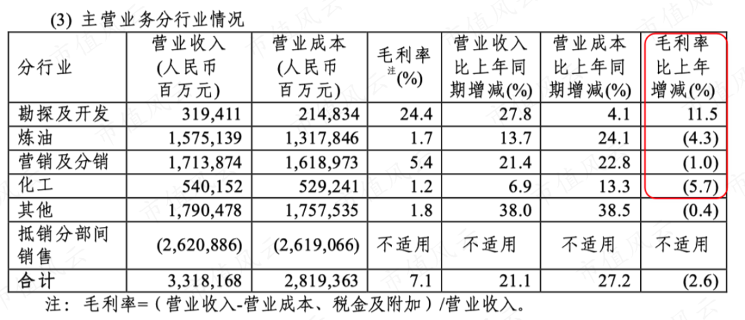 (中国石化分行业毛利率)
