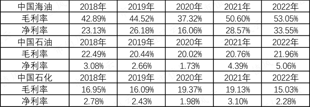 (1)2022年中国海油、中国石油、中国石化的毛利率分别是53.05%、21.96%、15.03%;