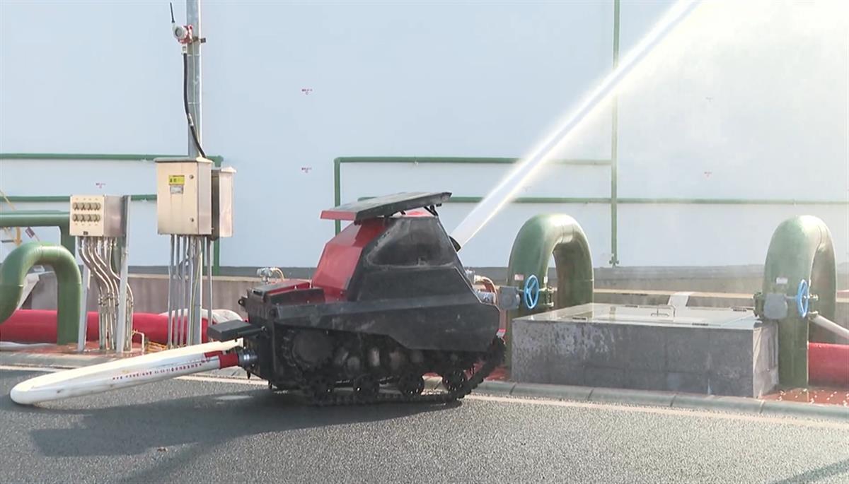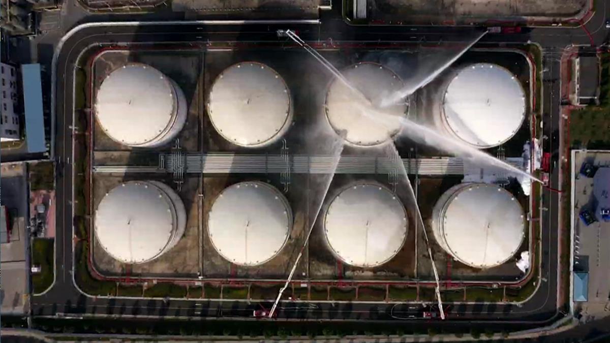“发起总攻!”11月24日10时左右,中国石化武汉油库里所有参与演练的消防力量集结,操作大跨距消防车、高喷消防车、拖车炮等设备喷出数条水柱,集中打向罐区模拟着火点,将“火势”扑灭。至此,中国石化大型成品油库突发火灾爆炸事故应急演练圆满结束,这是中国石化首次在湖北举行此类大型演练。在演练中,耐高温灭火机器人、系留无人机等系列前沿消防技术得到运用。