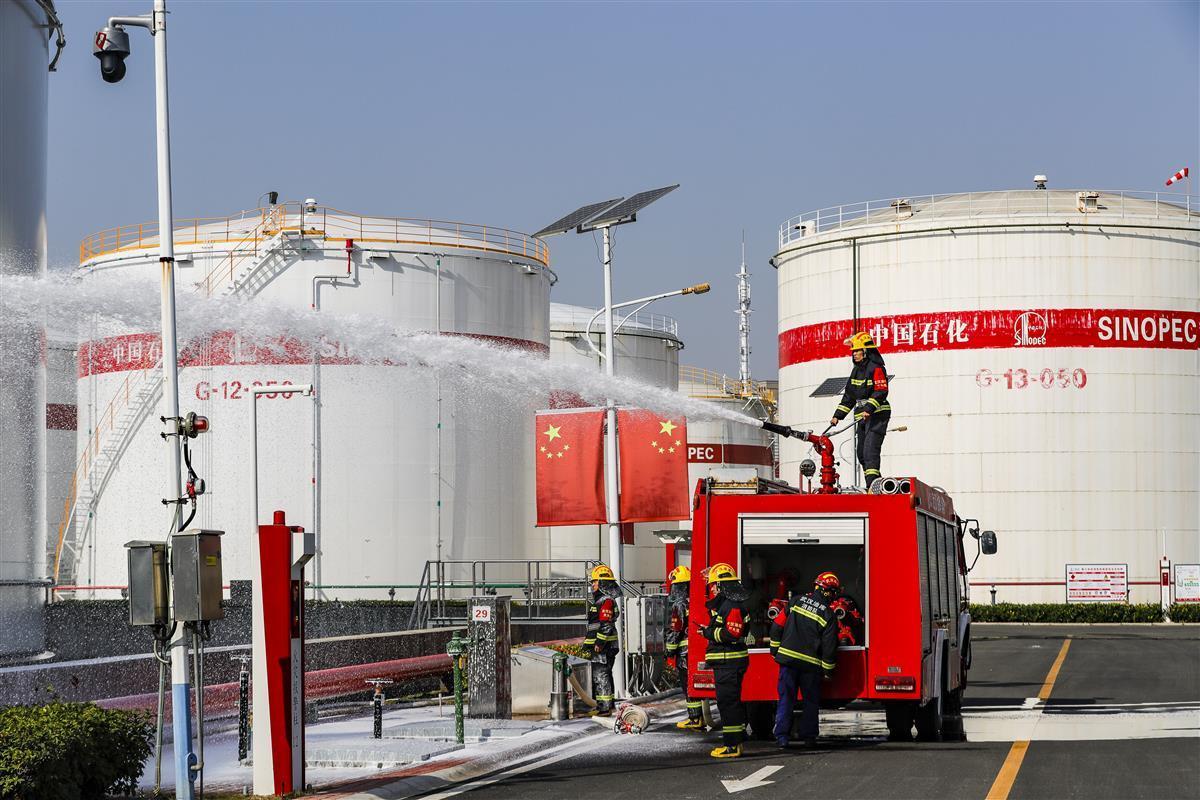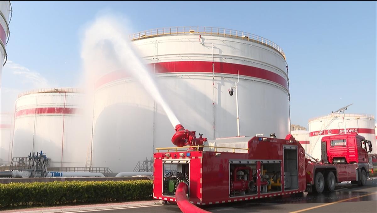 此外,极目新闻记者了解到,此次演练的中国石化武汉油库始建于1920年,是中国石化销售华中分公司5座油库之一,主要承担武汉周边市场及鄂西北地区的成品油保供职责,致力于打造绿色、低碳、智能化、花园式油库。武汉油库消防泵房配备3台消防冷却水泵,单台流量150L/s;2台泡沫泵和1套平衡式泡沫比例混合装置,混合器流量160L/s,消防水储量9000方,具有一定消防能力。