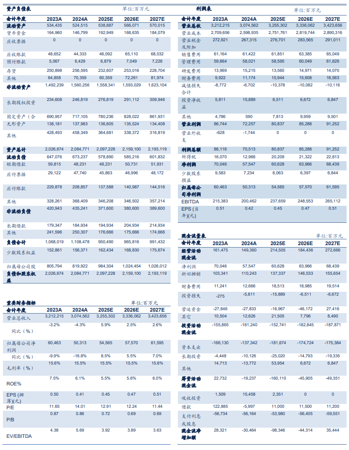 市值管理机制落地,高分红强化股东回报。公司首次制定市值管理机制,2024年公司制定市值管理制度,重点提升资产质量、运营效率和企业价值,并将市值管理作为一项长期战略管理行为。在股东回报方面,2024年公司预计2024年全年派发现金股利每股人民币0.286元(含税),与回购金额合并计算后年度利润分派比例达到75%。我们认为,公司市值管理机制落地彰显其长期投资价值,通过高分红与股东共享发展成果,强化股东回报。