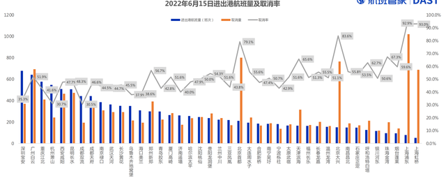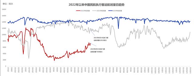 由于疫情在我国得以有效控制,我国的航空业也在不断的复苏过程中。航班管家发布的2022年6月15日民航运行简报显示:全民航执行客运航班量7304班次,同比2021年下降39.2%,环比上周同期提升25.4%,航班执飞率为46.6%