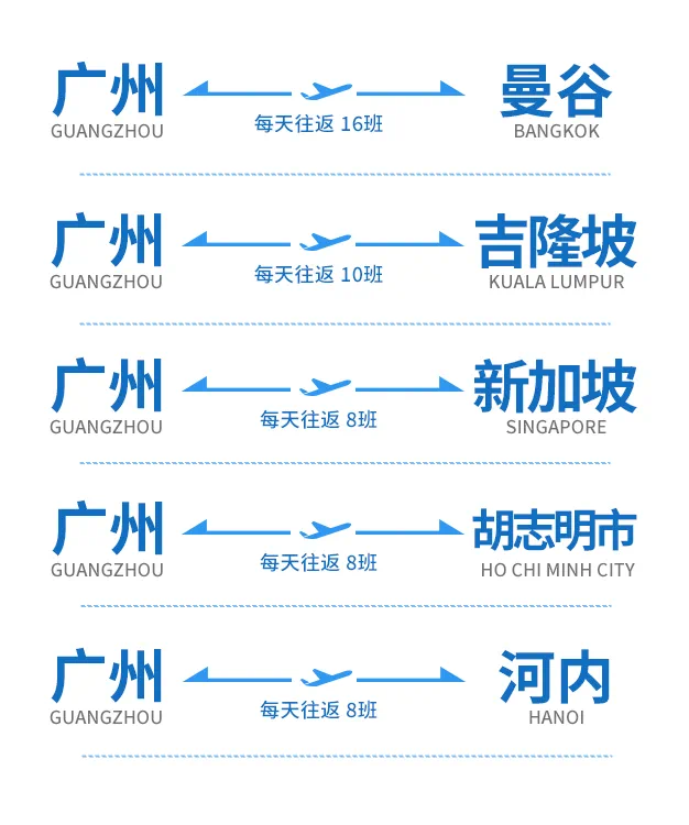 南航推出5条广州至东南亚