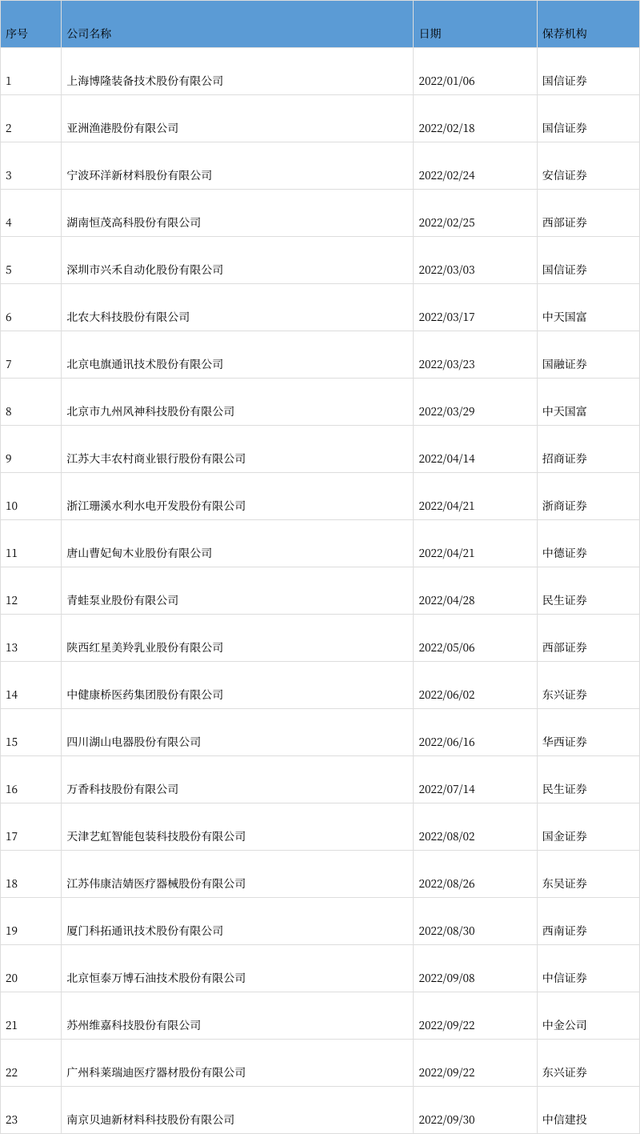 此前,1月13日,中信证券保荐的上海宏英智能科技股份有限公司过会;1月20日,中信证券保荐的兴通海运股份有限公司和益方生物科技(上海)股份有限公司过会;1月27日,中信证券保荐的北京中科润宇环保科技股份有限公司和广州鹿山新材料股份有限公司过会;2月10日,中信证券保荐的重庆望变电气(集团)股份有限公司过会;2月17日,中信证券保荐的上海丛麟环保科技股份有限公司和广东纳睿雷达科技股份有限公司过会;2月24日,中信证券保荐的中国海洋石油有限公司过会;3月16日,中信证券保荐的海光信息技术股份有限公司过会;3月23日,中信证券保荐的广东鼎泰高科技术股份有限公司过会;3月31日,中信证券保荐的辽宁信德新材料科技股份有限公司过会;4月15日,中信证券保荐的贵州振华风光半导体股份有限公司过会,中信证券和中金公司保荐的上海联影医疗科技股份有限公司过会;4月21日,中信证券保荐的上海泓博智源医药股份有限公司过会;4月25日,中信证券保荐的上海灿瑞科技股份有限公司过会;5月5日,中信证券保荐的沈阳富创精密设备股份有限公司过会;5月10日,中信证券保荐的江苏康为世纪生物科技股份有限公司过会;5月12日,中信证券保荐的江西天新药业股份有限公司、深圳市智微智能科技股份有限公司和恩威医药股份有限公司过会;5月23日,中信证券保荐的深圳天德钰科技股份有限公司过会;6月24日,中信证券保荐的杭州华塑科技股份有限公司过会;6月28日,中信证券保荐的有研半导体硅材料股份公司过会;7月13日,中信证券保荐的广州新莱福新材料股份有限公司过会;7月14日,中信证券保荐的箭牌家居集团股份有限公司、英科新创(厦门)科技股份有限公司过会;7月21日,中信证券保荐的广东宏石激光技术股份有限公司过会;7月25日,中信证券保荐的杭州微策生物技术股份有限公司过会,8月4日,中信证券保荐的苏州可川电子科技股份有限公司和河北恒工精密装备股份有限公司过会;8月11日,中信证券保荐的山东邦基科技股份有限公司过会;8月12日,中信证券保荐的无锡锡南科技股份有限公司过会;8月15日,中信证券保荐的杰华特微电子股份有限公司过会;8月26日,中信证券保荐的深圳市景创科技电子股份有限公司和深圳佰维存储科技股份有限公司过会;8月30日,中信证券保荐的深圳市三态电子商务股份有限公司过会;9月6日,中信证券保荐的厦门致善生物科技股份有限公司过会;9月7日,中信证券保荐的陕西华达科技股份有限公司过会;9月8日,中信证券保荐的湖北江瀚新材料股份有限公司和哈尔滨敷尔佳科技股份有限公司过会;9月28日,中信证券保荐的瑞博奥(广州)生物科技股份有限公司过会。此外,9月8日,中信证券保荐的北京恒泰万博石油技术股份有限公司被否。(2家券商联合保荐每家券商按0.5计算)