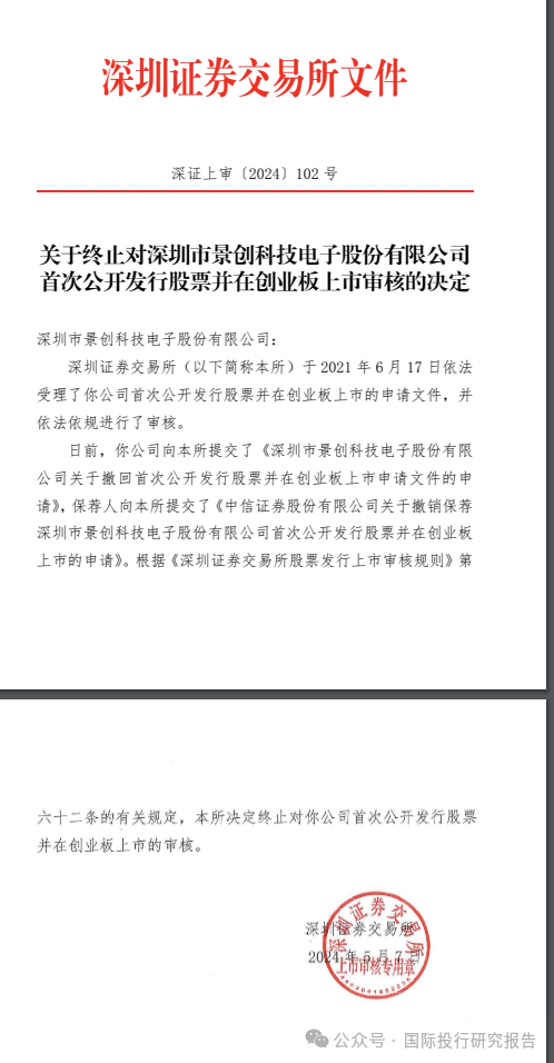 深圳景创科技终止IPO:2022年8月就已经过会,控制人夫妇有新加坡永居权,中信证券是保荐人