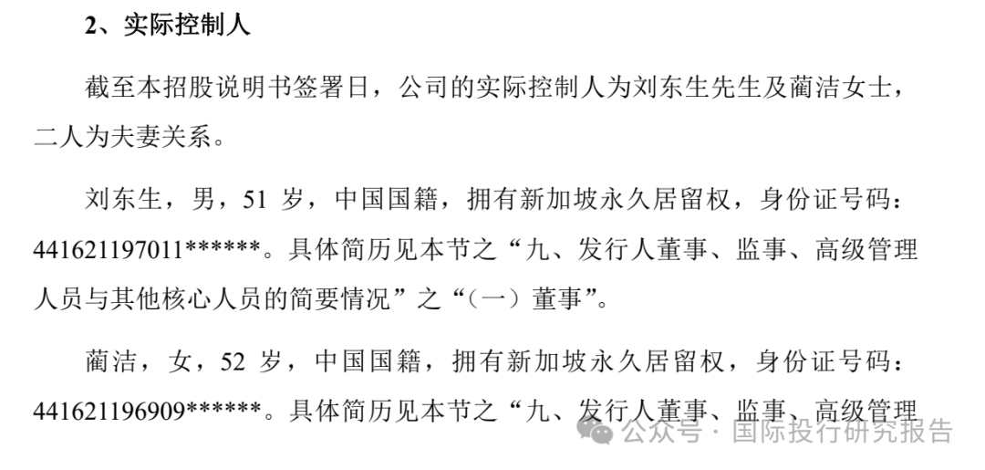 实际控制人夫妻都有新加坡永居权
