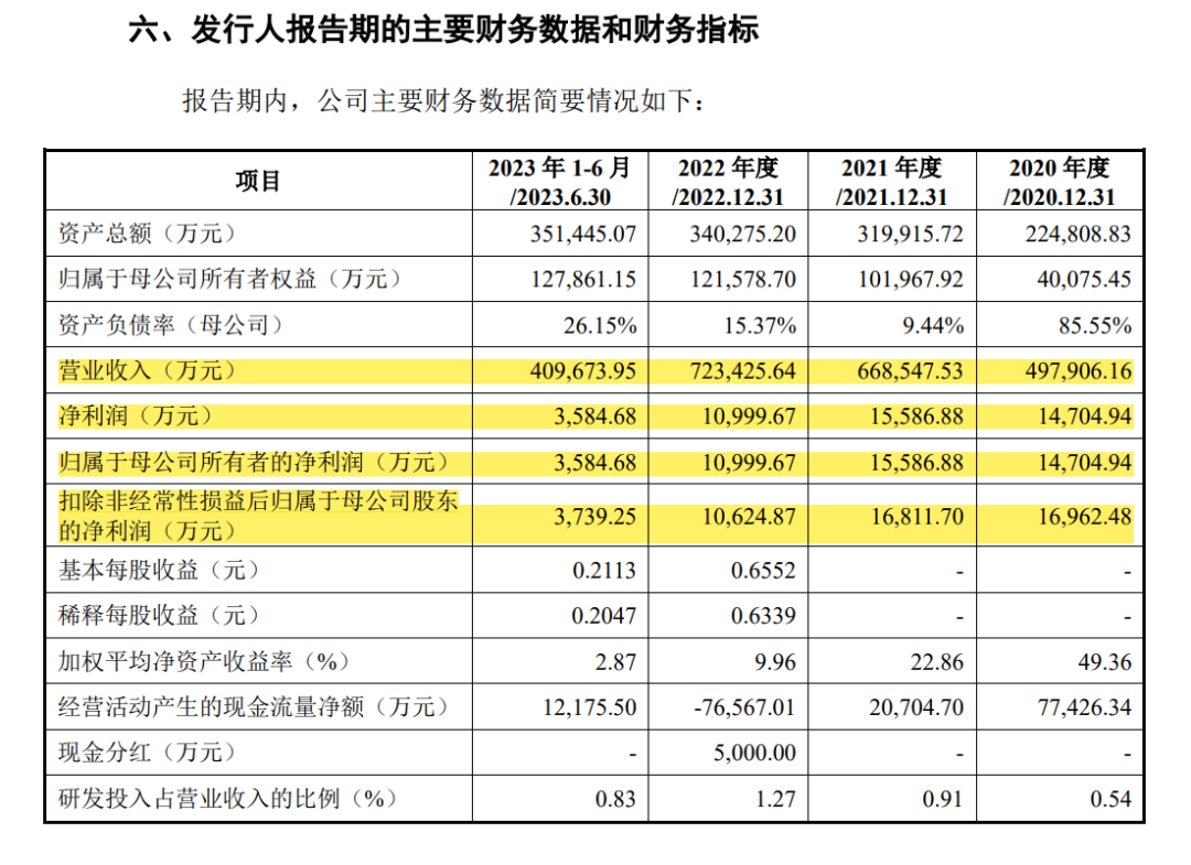 报告期内,公司营业收入分别为 497,906.16 万元、668,547.53 万元、723,425.64万元及 409,673.95 万元,公司收入持续增长。报告期内,公司净利润分别为14,704.94 万元、15,586.88 万元、10,999.67 万元及 3,584.68 万元,扣除非经常性损益后的净利润分别为 16,962.48 万元、16,811.70 万元、10,624.87 万元及 3,739.25万元,经营业绩波动与同行业保持一致,较为稳定。