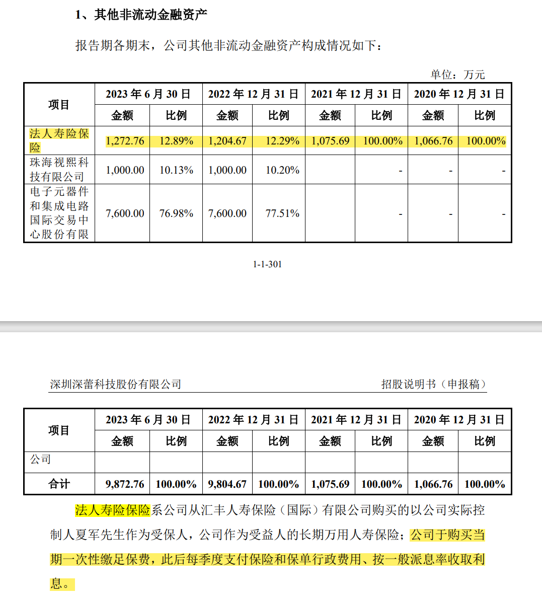 (3)发行人其他非流动资产中“法人寿险保险”项目为从汇丰人寿保险(国际)有限公司购买的以实际控制人夏军先生作为受保人,发行人作为受益人的长期万用人寿保险;报告期各期末,余额分别为 1,066.76 万元、1,075.69 万元、1,204.67 万元。