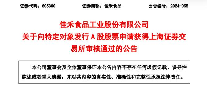 中国经济网北京11月27日讯佳禾食品(605300.SH)昨晚披露《关于向特定对象发行A股股票申请获得上海证券交易所审核通过的公告》称,公司于近日收到上交所上市审核中心向公司出具的通知,认为公司向特定对象发行股票申请符合发行条件、上市条件和信息披露要求。