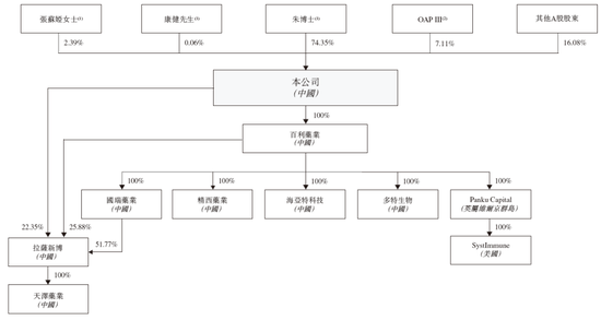 招股书显示,百利天恒在香港上市前的股东架构中: