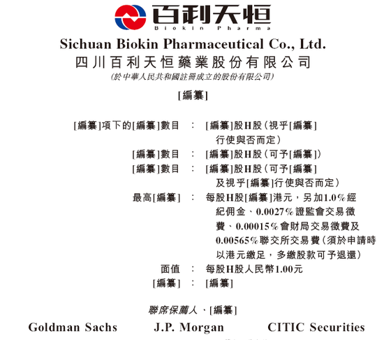高盛、摩根大通、中信证券为其联席保荐人;