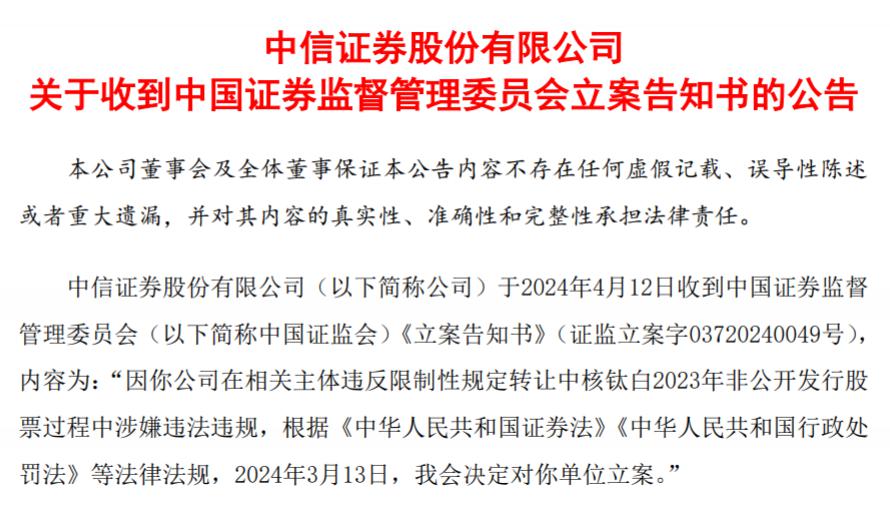 值得注意的是,2024 年 4 月,因在几个 IPO 项目中涉嫌违规被立案调查,此后中信证券陆续撤回了多个 IPO 项目的上市申请。