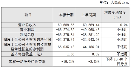 龙芯中科(688047.SH)昨日晚间披露2024年度业绩快报公告。报告期内,公司全年实现营业收入50,688.55万元,较上年同期增长0.24%;实现归属于母公司所有者的净利润-62,376.34万元,较上年同期减少29,432.36万元;实现归属于母公司所有者的扣除非经常性损益的净利润-66,035.13万元,较上年同期减少21,849.12万元。