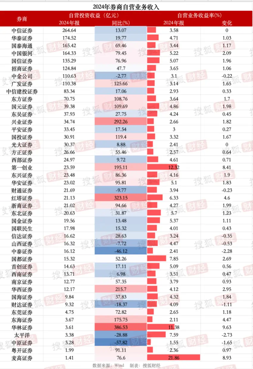 受IPO阶段性收紧影响,2024年券商投行业务普遍失速,而自营仍为“胜负手”。