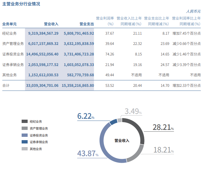 分业务看,中信证券主要业务板块均稳步增长。2025年上半年,公司经纪业务收入93.19亿元,同比增加21.11%;资产管理业务收入60.17亿元,同比增加22.32%;证券投资业务收入144.97亿元,同比增加8.15%;证券承销业务收入20.54亿元,同比增加19.16%。