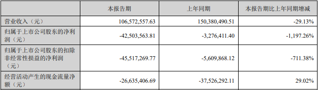 2024年,公司实现营业收入2.41亿元,同比下降28.02%;归属于上市公司股东的净利润-6266.67万元,上年同期为1885.07万元;归属于上市公司股东的扣除非经常性损益的净利润-6645.45万元,上年同期为525.08万元;经营活动产生的现金流量净额-6717.79万元,上年同期为1241.31万元。
