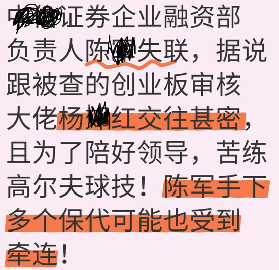 据知情人士透露,陈J与此前被查的创业板审核大佬杨JH交情甚密,二人关系非同寻常,甚至有消息称,陈J曾为“陪好领导”而苦练高尔夫球技,以期拉近与监管高层的距离。