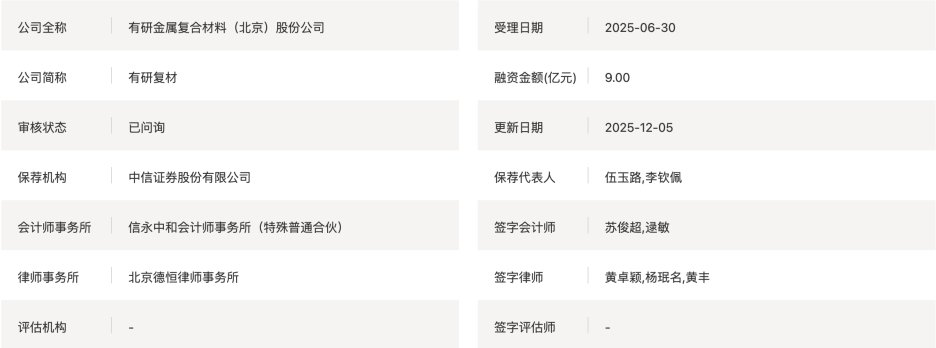 有研金属复合材料(北京)股份公司(简称“有研复材”)是一家主要从事金属复合材料及制品、特种有色金属合金制品研发、生产和销售的高新技术企业,业务分为金属复合材料及制品和特种有色金属合金制品板块。主要产品包括金属基复合材料及制品、双金属复合材料及制品、特种铝合金制品和特种铜合金制品等,公司产品广泛应用于航空航天、军工电子、智能终端、家用电器等领域。