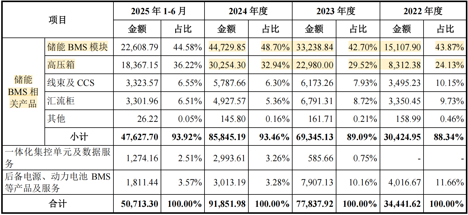 公司主要产品为储能BMS模块及相关产品,报告期内该产品广泛应用于电源侧/电网侧大型高压储能电站,以及工商业储能、户用储能等新型储能领域。
