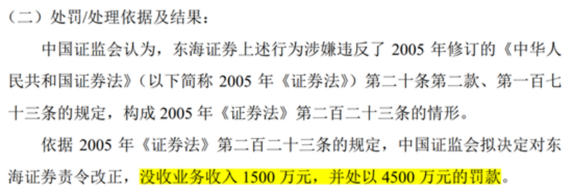 2025年券商行业最大单笔罚单由东海证券领受,该公司作为金洲慈航集团股份有限公司重大资产重组项目独立财务顾问,存在出具的相关文件有重大遗漏、虚假记载,且在独立财务顾问业务和项目持续督导过程中未勤勉尽责等违法行为。据东海证券公告,2025年7月,中国证监会对其采取“没一罚三”的处罚,没收业务收入1500万元,并处以4500万元罚款,合计6000万元。项目负责人马媛媛被罚款10万元,签字主办人周增光、陈翔分别被罚款8万元,成为2025年券商行业罚没金额最高的案例。
