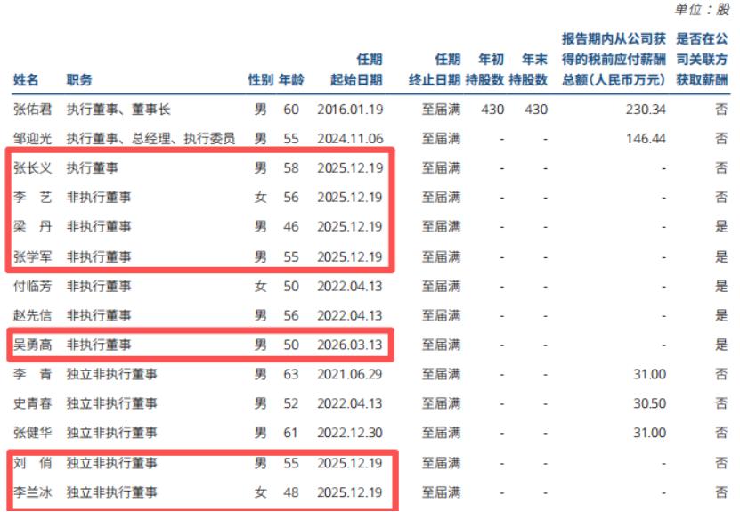 最新的财报显示,中信证券董事会成员近期换了大半。像是执行董事张长义,非执行董事李艺、梁丹、张学军,独立非执行董事刘俏、李兰冰,职工董事施亮等,任期起始日期均为2025年12月19日。