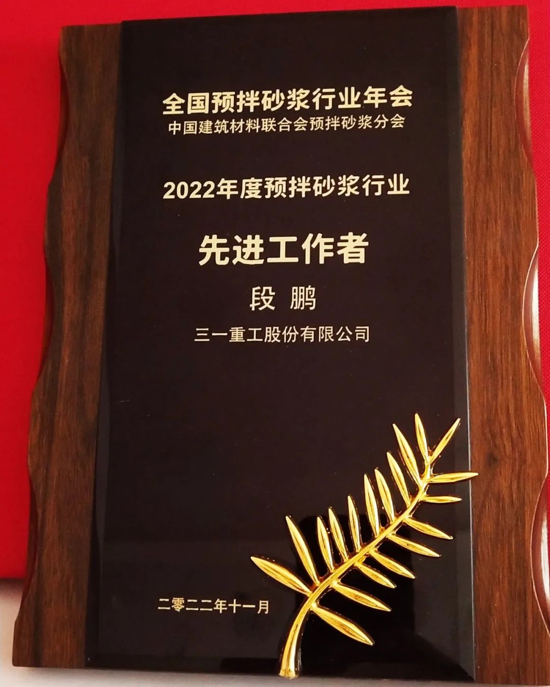 大会对本年度在预拌砂浆行业为行业发展做出贡献的优秀集体和优秀个人予以表彰。三一重工荣获2022年度预拌砂浆行业影响力品牌奖,三一重工砂浆产品负责人段鹏先生荣获2022年度预拌砂浆行业先进工作者。