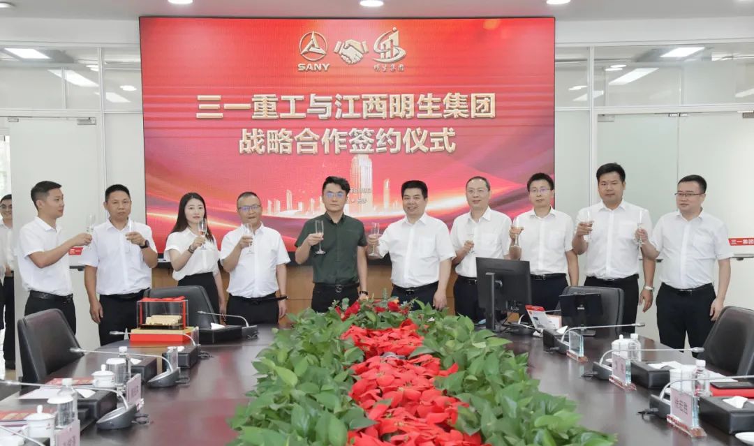 会上,三一重工和明生集团签署了战略合作协议,一致同意开展更加全面的战略深度合作,建成包括干混砂浆站、特种砂浆站、精品制砂和破碎生产线、混凝土成套设备、PC装配式和ALC加气板材的全面成套产品合作,并成立干混砂浆合作实验室(联合共建单位),共同打造江西规模最大、国内先进的干混砂浆生产示范企业,进一步为周边城市绿色发展、品质提升和低碳转型提供支撑。