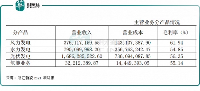 分产品看,风力发电毛利率最高,2021年约为61.84%;光伏发电其次,约为56.35%;氢能业务毛利率约为55.14%,水利发电最低,约为54.85%。
