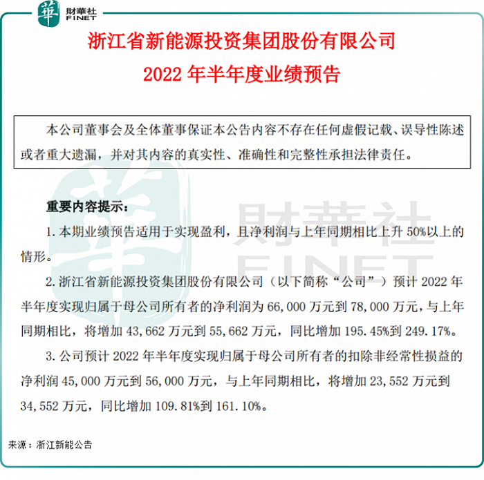 2022年上半年,浙江新能延续了2021年业绩高成长性。