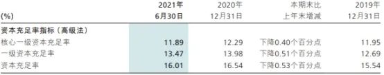 今年上半年,招商银行的资本充足率指标均下降。截至今年6月末,招商银行的核心一级资本充足率为11.89%,比上年末下降0.40个百分点;一级资本充足率为13.47%,比上年末下降0.51个百分点;资本充足率为16.01%,比上年末下降0.53个百分点。