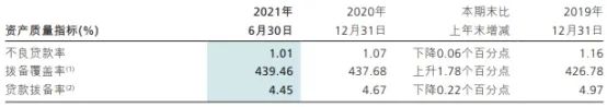 今年上半年,招商银行的不良贷款余额增加。截至2021年6月30日,招商银行的不良贷款余额545.42亿元,较上年末增加9.27亿元,增长1.73%;不良贷款率1.01%,较上年末下降0.06个百分点;拨备覆盖率439.46%,较上年末上升1.78个百分点。