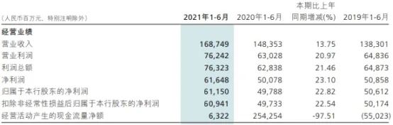 招商银行(600036.SH)近日披露了2021年半年度报告。今年上半年,招商银行实现营业收入1687.49亿元,同比增长13.75%;实现归属于公司股东的净利润611.50亿元,同比增长22.82%;实现扣除非经常性损益后归属于公司股东的净利润609.41亿元,同比增长22.54%;经营活动产生的现金流量净额为63.22亿元,同比减少97.51%。