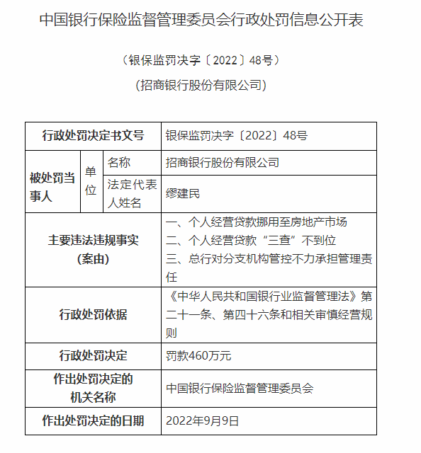 招商银行被银保监会罚款460万元,原因是该行存在以下问题: