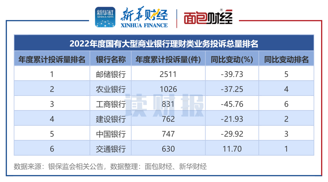 国有银行理财投诉量排名:邮储总量最大,交行同比增速快