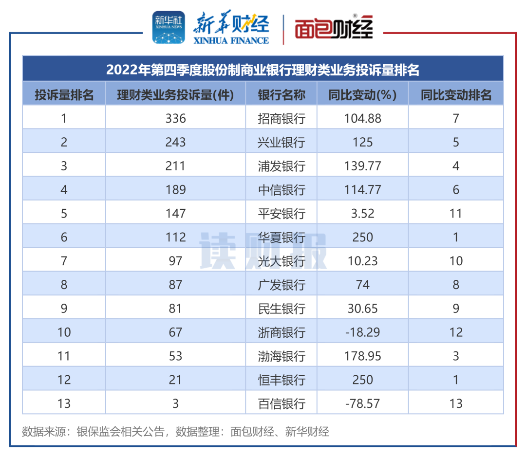 股份制银行理财投诉排名:兴业、招商、浦发位居前三,华夏增速快
