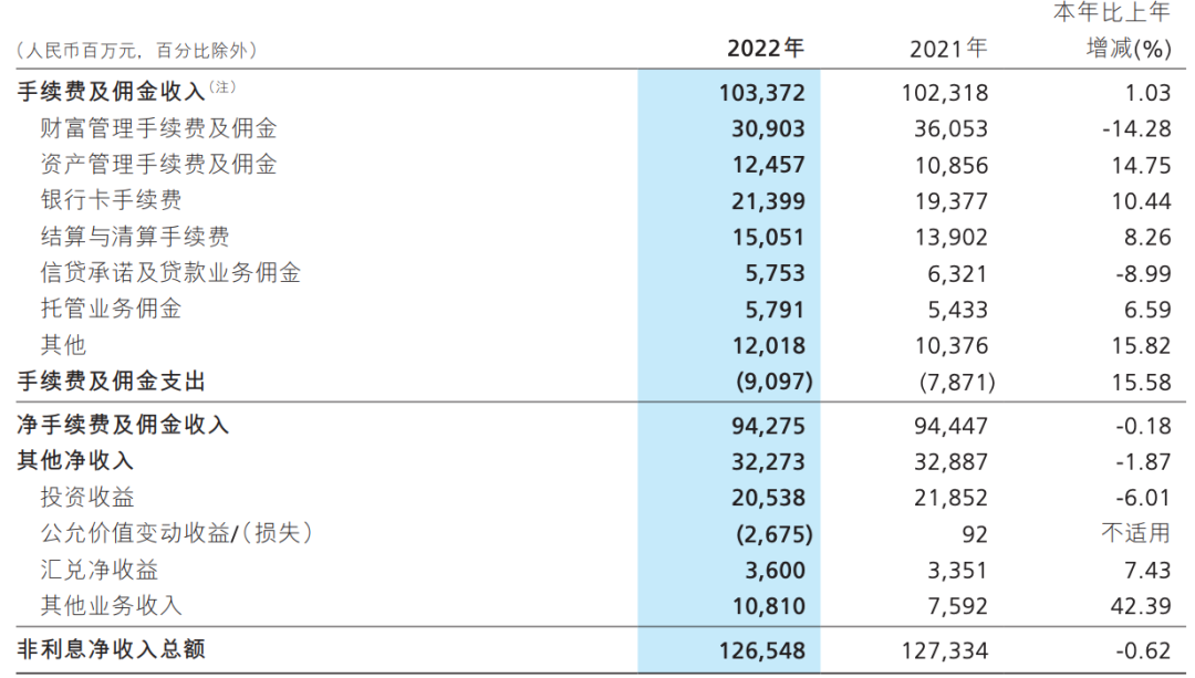 在手续费及佣金收入中,最大收入项财富管理手续费及佣金收入309.03亿元,同比下降14.28%。招商2022年大财富管理收入491.51亿元,同口径较上年下降6.10%,也是财富管理手续费及佣金收入同比下降所致。