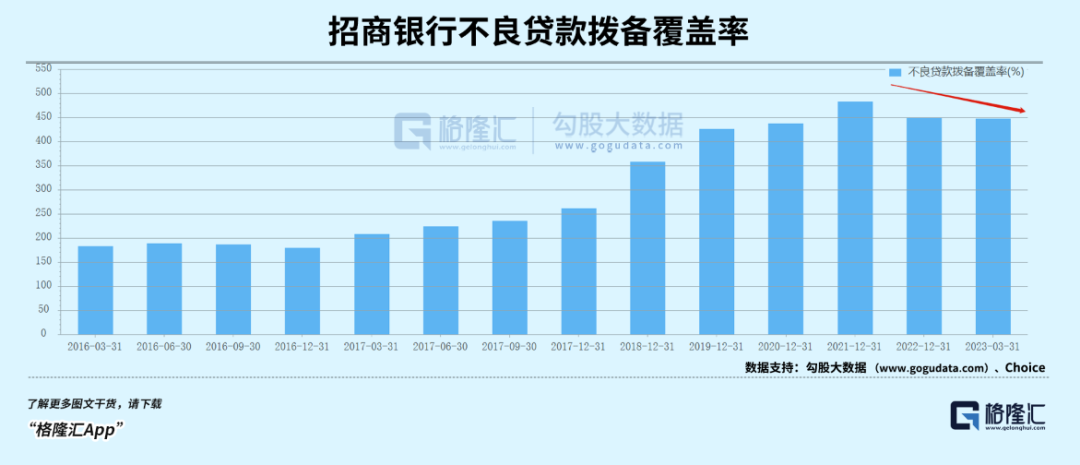 一季度末,不良贷款拨备率为448.32%,较去年末继续减少2.47%,较2021年高峰大幅减少35.55%。这并不是一个好现象,证明当前营收承压,开始动用该指标进行利润调节了。这亦是今年一季度利润保持增长的主要逻辑。