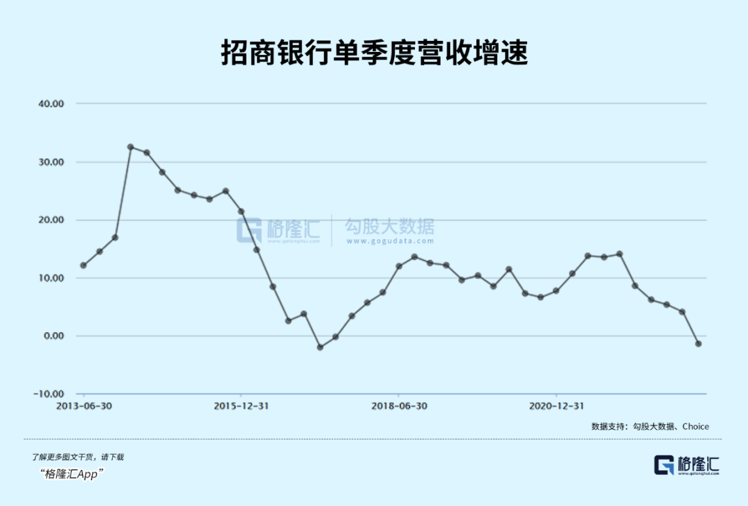 招行营收单季度下滑其实是比较罕见的,上一次还是在2017年的一季度和二季度。这亦是招行10年来仅有的3次负增长。