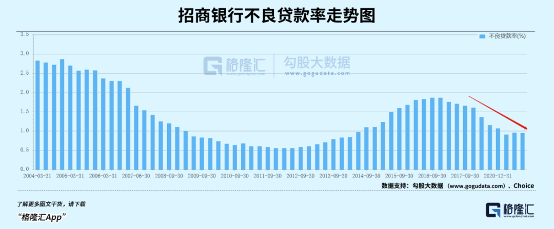 该净息差创下2010年以来最低水平,并且下降趋势还将持续。一方面,生息资产收益率下降,背后是因为经济增速拾级而下,贷款利率趋于下行。另一方面,受到资本市场剧烈波动以及理财产品回报率下降,客户增加定期存款,导致招行活期存款占比有所下降,以致于负债成本率上升至1.68%。两面夹击之下,净息差下降明显。