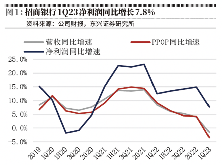 2023年一季度,招行业绩增长主要依靠规模扩张、拨备计提压力同比减轻所驱动,而净息差同比明显收窄、非息收入增长放缓、成本支出加快则对利润增长带来拖累。