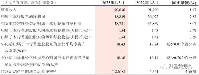 对于招商银行增利不增收现象,主要源于当期信用减值损失同比下降23.70%至164.21亿元。其中,贷款和垫款信用减值损失165.50亿元,同比增加54.90亿元,主要是一季度贷款规模增幅大于上年同期,贷款损失准备计提增加;除贷款和垫款外的其他类别业务信用减值损失合计-1.29亿元,同比减少105.92亿元。除贷款和垫款外的其他类别业务信用减值损失冲回主要是买入返售资产规模较上年末减少。